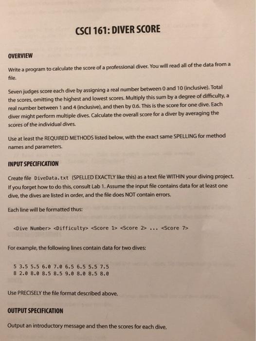 Solved Csci 161 Diver Score Overview Write A Program To Chegg Com